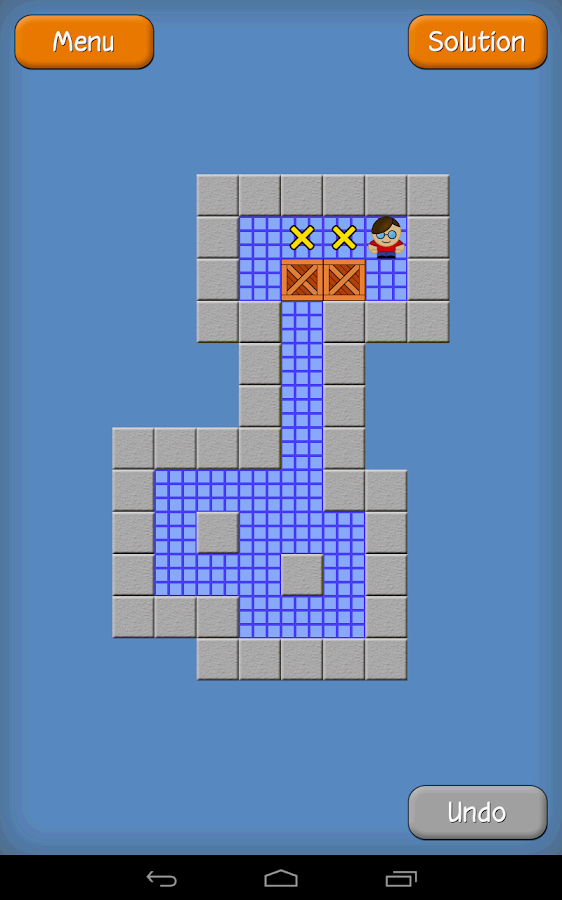 The warehouse is filled with wooden crates and floating red exes. Its goal is to push crates into marked positions. Sokoban level 1 2 3 4 5 6 7 8 9 10 11 12 13 14 and 15 solution.